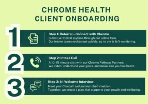 Reaching out for support can be one of the hardest steps someone takes. Often, people arrive at that moment feeling overwhelmed, uncertain, or unsure of what will happen next. At Chrome Health, we understand that vulnerability, and we believe the way support begins matters just as much as the support itself.